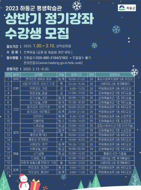 [ºÎ¿ï°æ] Çϵ¿±º Æò»ýÇнÀ Á¤±â°Á ³»´Þ °³° |2023. 01.26