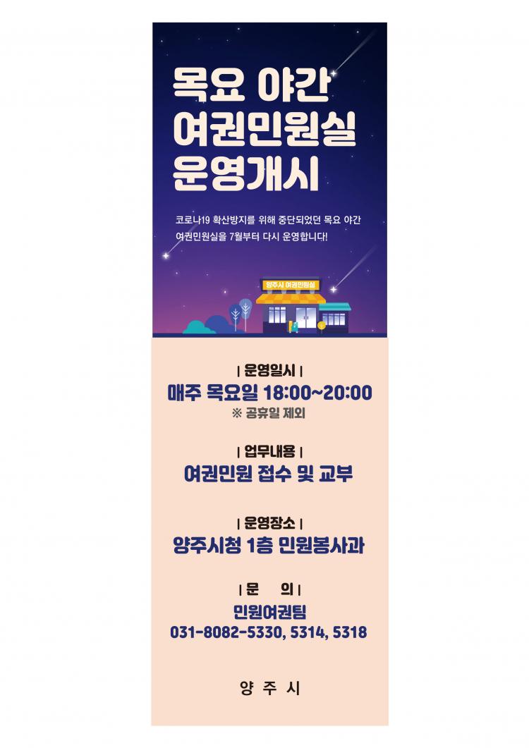 [Æ÷Åä´º½º] ¾çÁÖ½Ã, ¡®¸ñ¿ä ¾ß°£ ¿©±Ç¹Î¿ø½Ç¡¯¿î¿µ Àç°³ |2022. 07.07