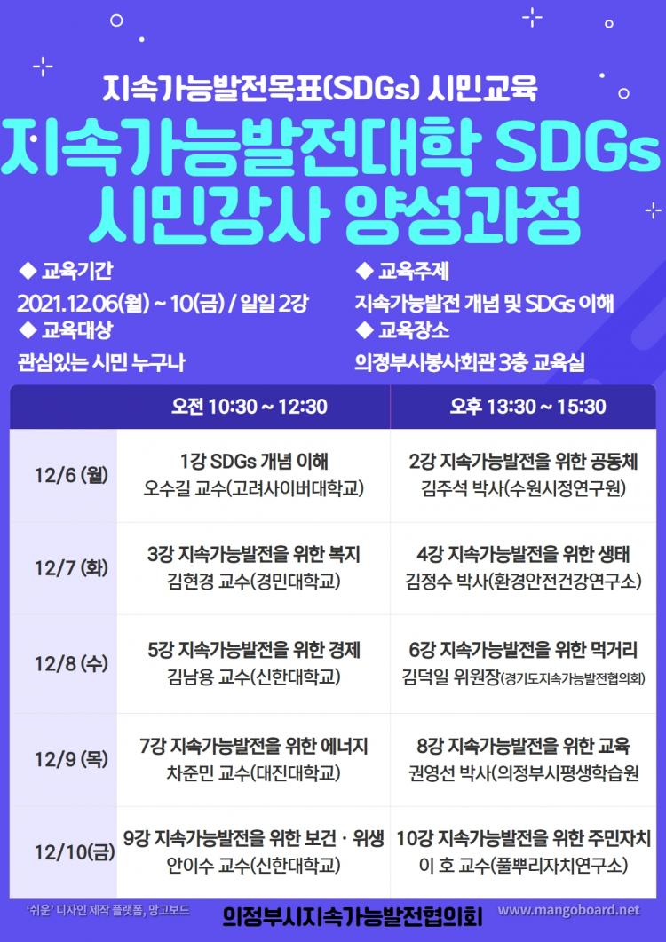 [Æ÷Åä´º½º] ÀÇÁ¤ºÎ½ÃÁö¼Ó°¡´É¹ßÀüÇùÀÇȸ, SDGs ½Ã¹Î°»ç ¾ç¼º°úÁ¤ ±³À° ½Ç½Ã |2021. 11.30