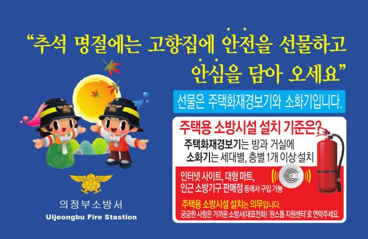[Çѱ¹ÇàÁ¤´º½º - °æ±â¹æ¼Û±¹(±¹Àå:Á¤¿µ¸ð) ] ÀÇÁ¤ºÎ¼Ò¹æ¼(¼Àå ±èÀ±È£)´Â ´Ù°¡¿À´Â Ãß¼® ¿¬ÈÞ¸¦ ¸Â¾Æ ÁÖÅÃ¿ë ¼Ò¹æ½Ã¼³ ÀÚÀ²¼³Ä¡ ȯ°æ Á¶¼ºÀ» À§ÇØ ¡®°íÇâÁý, ÁÖÅÃ¿ë ¼Ò¹æ½Ã¼³ ¼±¹°Çϱ⡯ ¶ó´Â ÁÖÁ¦·Î È«º¸¿¡ ³ª¼±´Ù°í ¹àÇû´Ù.