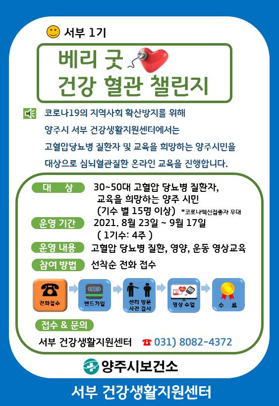 [Çѱ¹ÇàÁ¤´º½º - °æ±â¹æ¼Û±¹(±¹Àå:Á¤¿µ¸ð) ] ¾çÁÖ½Ã(½ÃÀå À̼ºÈ£)´Â ¡®¾çÁÖ On-Health¡¯ »ç¾÷ÀÇ ÀÏȯÀ¸·Î ¿Â¶óÀÎ ½É³úÇ÷°üÁúȯ ¿¹¹æ°ü¸®»ç¾÷ ¡®º£¸®±Â °Ç°Ç÷°ü縰Áö¡¯ Âü¿©ÀÚ(µ¿ºÎ 2±â, ¼ºÎ 1±â)¸¦ ¸ðÁýÇÑ´Ù.