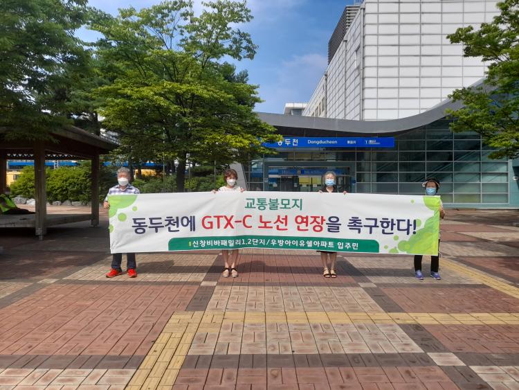 [Çѱ¹ÇàÁ¤´º½º - °æ±â¹æ¼Û±¹(±¹Àå:Á¤¿µ¸ð) ] µ¿µÎõ¿ª Àα٠¾ÆÆÄÆ®(½Åâºñ¹ÙÆÐ¹Ð¸®, ¿ì¹æ¾ÆÀÌÀ¯½©) ÀÔÁֹΠ4¸íÀÌ 6ÀÏ µ¿µÎõ¿ª ¾Õ ±¤Àå¿¡¼ GTX-C³ë¼± µ¿µÎõ ¿¬ÀåÀ» ¿°¿øÇÏ´Â Áýȸ¸¦ °¡Á® ´«±æÀ» ²ø¾ú´Ù.