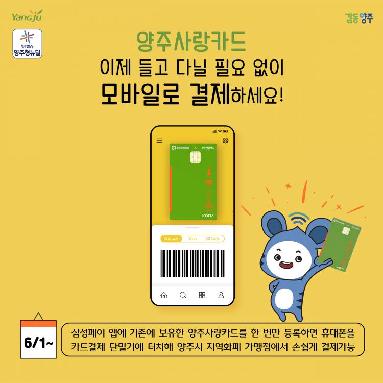 [Çѱ¹ÇàÁ¤´º½º - HKSÇàÁ¤¹æ¼Û(°æ±â¹æ¼Û±¹) ±¹Àå:Á¤¿µ¸ð ] ¾çÁÖ½Ã(½ÃÀå À̼ºÈ£)´Â ¿À´Â 6¿ùºÎÅÍ ÈÞ´ëÀüÈ »ï¼ºÆäÀ̸¦ ÅëÇÑ ¡®¾çÁÖ»ç¶û Ä«µå ¸ð¹ÙÀÏ °£Æí°áÁ¦ ¼ºñ½º¡¯¸¦ º»°Ý ½ÃÀÛÇÑ´Ù°í 31ÀÏ ¹àÇû´Ù.