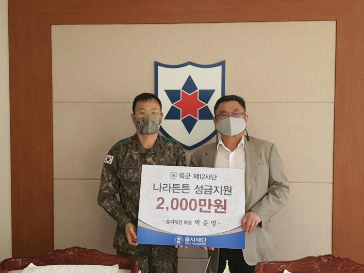 [Çѱ¹ÇàÁ¤´º½º - HKSÇàÁ¤¹æ¼Û(°æ±â¹æ¼Û±¹) ±¹Àå:Á¤¿µ¸ð ] ¹ÚÁØ¿µ À»ÁöÀç´Ü ȸÀåÀÌ 12ÀÏ °¿øµµ ÀÎÁ¦±º À°±º 12»ç´Ü À»ÁöºÎ´ë¸¦ ¹æ¹®ÇØ »çÀç Ã⿬À¸·Î ³ª¶óưư ¹æÀ§¼º±Ý 2,000¸¸¿øÀ» Àü´ÞÇß´Ù.