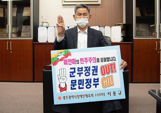 [ž´º½º] ±¤ÁÖ½ÃÀå¾ÖÀÎüÀ°È¸ ¼¿ë±Ô ¼ö¼®ºÎȸÀå, ¡°¹Ì¾á¸¶ ¹ÎÁÖÁÖÀÇ ÀÀ¿ø¡±µ¿Âü |2021. 04.20
