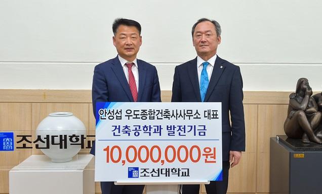 [´º½ºÅë - ±è±¤¿ ±âÀÚ ] ¾È¼º¼· ¿ìµµÁ¾ÇÕ°ÇÃà»ç»ç¹«¼Ò ´ëÇ¥°¡ Á¶¼±´ëÇб³ÀÇ °ÇÃàÀÎÀç ¾ç¼ºÀ» Áö¿øÇϱâ À§ÇØ ¹ßÀü±â±Ý 1000¸¸¿øÀ» ±âºÎÇß´Ù.