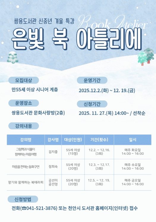[ÃæÃ»±Ç] õ¾È½Ã ½Ö¿ëµµ¼°ü, ³»´Þ ½ÅÁß³â °Ü¿ïÆ¯° ¡®Àººû ºÏ ¾ÆÆ²¸®¿¡¡¯ ¿î¿µ |2025. 11.26