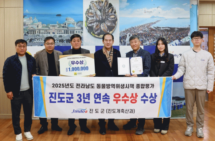 [HKSÇàÁ¤¹æ¼Û]Áøµµ±ºÀº Àü¶ó³²µµ¿¡¼ ÁÖ°üÇÑ ¡®2025³â µ¿¹°¹æ¿ªÀ§»ý½ÃÃ¥ Á¾ÇÕÆò°¡¡¯¿¡¼ ¿ì¼ö»óÀ» ¹ÞÀ¸¸ç, 3³â ¿¬¼Ó ¿ì¼ö Áö¹æÀÚÄ¡´Üü·Î ¼±Á¤µÆ´Ù. À̹ø Æò°¡´Â Àü¶ó³²µµÀÇ 22°³ ½Ã±ºÀ» ´ë»óÀ¸·Î µ¿¹°¹æ¿ª°ú Ãà»ê¹° À§»ý ½ÃÃ¥ ¼º°ú µîÀ»¡¦