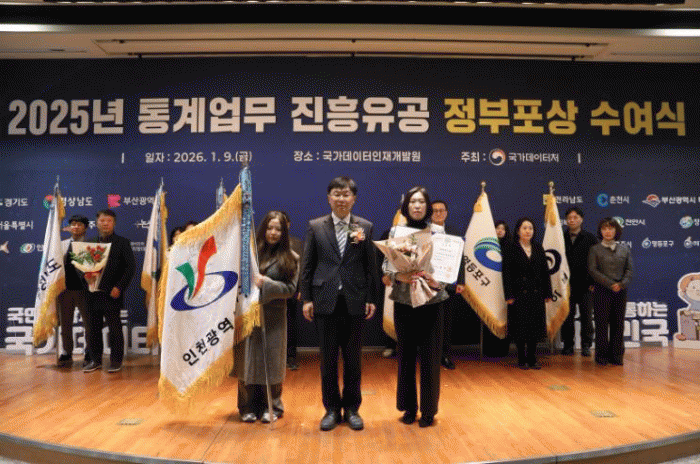 [HKSÇàÁ¤¹æ¼Û]ÀÎõ ¼±¸´Â Áö³ 9ÀÏ Åë°è¾÷¹« ºÐ¾ß¿¡¼ ¿ì¼öÇÑ ¼º°ú¸¦ ÀÎÁ¤¹Þ¾Æ ¡®2025³â Åë°è¾÷¹« ÁøÈïÀ¯°ø(Åë°èÁ¶»ç ºÎ¹®)¡¯ ±¹¹«ÃѸ® ±â°ü ǥâÀ» ¼ö»óÇß´Ù°í ¹àÇû´Ù.