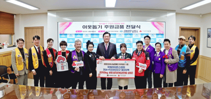 [¼öµµ±Ç] ¹ÌÃßȦ±¸, ±¹Á¦¶óÀ̿½ºÇùȸ 354-F(ÀÎõ)Áö±¸ Á¦3 Áö¿ªÀ¸·ÎºÎÅÍ ±èÀå ±èÄ¡ 410»óÀÚ Àü´Þ¹Þ¾Æ |2025. 12.05