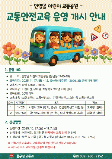 [¼öµµ±Ç] ÀÎõ Áß±¸, ¾È¾ç°ñ ¾î¸°ÀÌ ±³Åë°ø¿ø¼ ÇöÀå Á᫐ ¡®±³Åë¾ÈÀü±³À°¡¯ ¿î¿µ |2025. 10.22