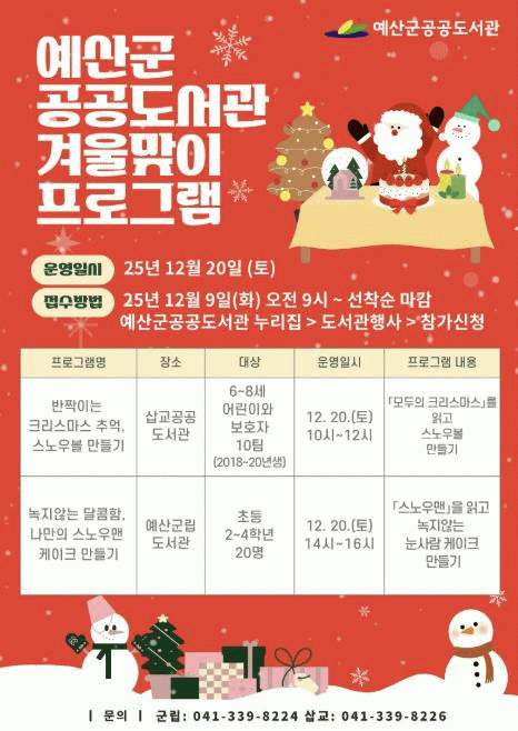 [ÃæÃ»±Ç] ¿¹»ê±º °ø°øµµ¼°ü, '°Ü¿ï¸ÂÀÌ Å©¸®½º¸¶½º üÇè ÇÁ·Î±×·¥' ¿î¿µ |2025. 12.05