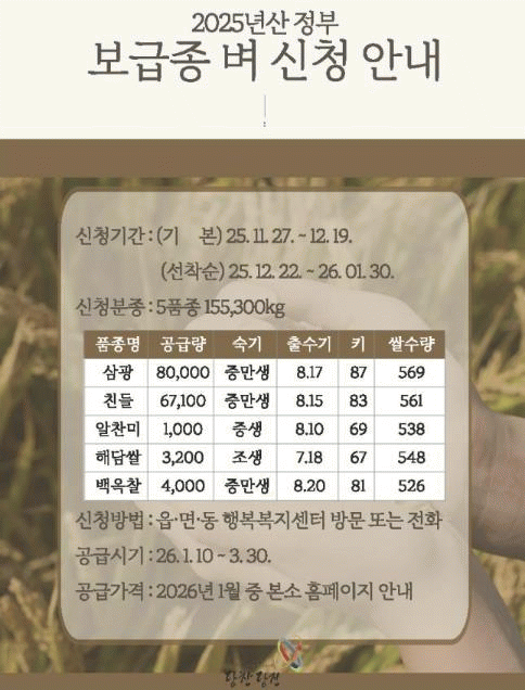 [ÃæÃ»±Ç] ´çÁø½Ã, 2026³â º³ó»ç ´ëºñ Á¤ºÎ º¸±ÞÁ¾ º ½Åû Á¢¼ö |2025. 12.05