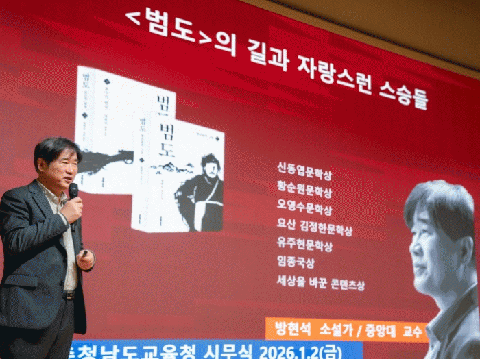 [HKSÇàÁ¤¹æ¼Û]Ãæ³²±³À°Ã»Àº 2026³â 1¿ù 2ÀÏ »õÇØ¸¦ ¸Â¾Æ Àü Á÷¿øÀ» ´ë»óÀ¸·Î Ưº°°¿¬À» °³ÃÖÇß´Ù. À̹ø °¿¬Àº ±èÁöö ±³À°°¨ÀÌ °Á¶ÇØ ¿Â ¿ª»ç ±³À°ÀÇ Á߿伺À» ¹ÙÅÁÀ¸·Î ¸¶·ÃµÈ ÀÚ¸®·Î, Ãæ³²±³À°Ã» Àü Á÷¿øÀº ¹°·Ð °¢±Þ Çб³¿Í ±â°ü¡¦