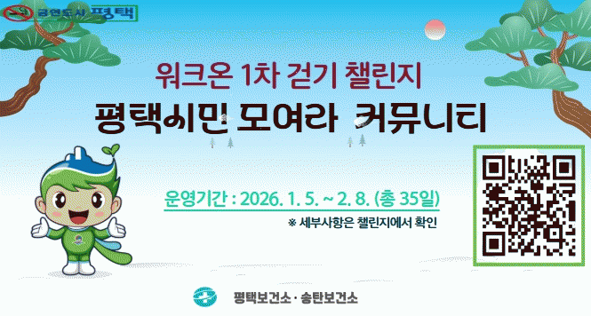 [HKSÇàÁ¤¹æ¼Û]ÆòÅýô ½Ã¹ÎµéÀÇ °Ç°ÇÑ »ýȰ½À°ü Çü¼ºÀ» Áö¿øÇϱâ À§ÇØ ¿À´Â 1¿ù 5ÀϺÎÅÍ 2¿ù 8ÀϱîÁö ÇÑ ´Þ°£ ¿öÅ©¿Â(WalkOn) ¾Û ³» ¡®ÆòÅýùΠ¸ð¿©¶ó¡¯ Ä¿¹Â´ÏƼ¸¦ ÅëÇØ Á¦1Â÷ °È±â ¼±Âø¼ø 縰Áö¸¦ ¿î¿µÇÑ´Ù. À̹ø 縰Áö´Â 2026³â¡¦