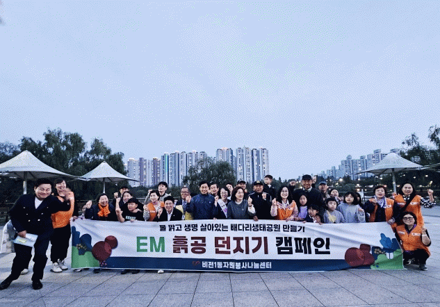 [¼öµµ±Ç] ÆòÅýà ºñÀü1µ¿ ÀÚ¿øºÀ»ç ³ª´®¼¾ÅÍ, ¹è²É»ýÅÂÃàÁ¦¿¡¼ ½Ã¹Î°ú ÇÔ²² ¡®EM Èë°ø ´øÁö±â¡¯·Î ±ú²ýÇÑ È£¼ö ¸¸µé±â |2025. 10.21