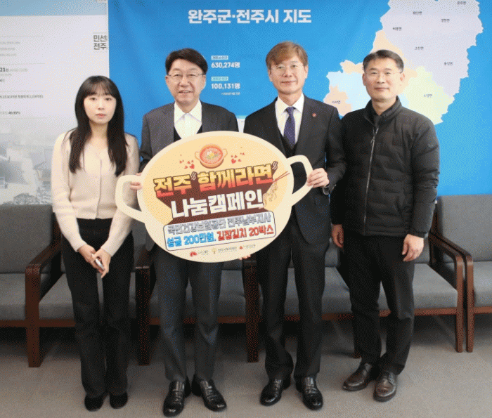[HKSÇàÁ¤¹æ¼Û]±¹¹Î°Ç°º¸Çè°ø´Ü ÀüÁÖ³²ºÎÁö»ç´Â 22ÀÏ ÀüÁÖ½ÃÀå½ÇÀ» ã¾Æ ÀüÁֽÿ¡ ¼º±Ý 200¸¸ ¿ø°ú ±èÀå±èÄ¡ 20¹Ú½º¸¦ Àü´ÞÇß´Ù.