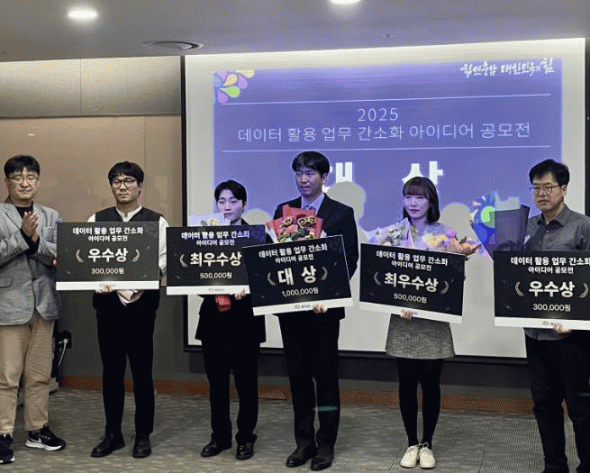 [HKSÇàÁ¤¹æ¼Û]¾Æ»ê½Ã°¡ 13ÀÏ ¡®2025³â Ãæ³² µ¥ÀÌÅÍ È°¿ë ¾÷¹« °£¼ÒÈ ¾ÆÀ̵ð¾î °ø¸ðÀü¡¯¿¡¼ ´ë»ó°ú ÃÖ¿ì¼ö»óÀ» µ¿½Ã¿¡ ¼ö»óÇϸç 2³â ¿¬¼Ó °ø¸ðÀü Á¤»óÀ» Â÷ÁöÇß´Ù. Àü±¹ °ø¹«¿øÀ» ´ë»óÀ¸·Î µ¥ÀÌÅÍ ±â¹Ý ÇàÁ¤ Çõ½Å ¾ÆÀ̵ð¾î¸¦ ¹ß±¼Çϱ⠡¦