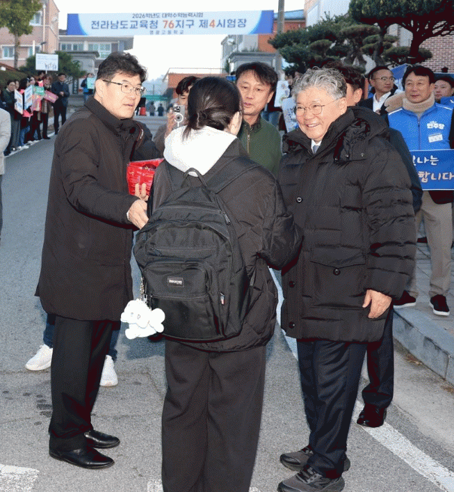 [HKSÇàÁ¤¹æ¼Û]¿µ±¤±ºÀº 11¿ù 13ÀÏ 2026Çг⵵ ´ëÇмöÇдɷ½ÃÇèÀ» ¸Â¾Æ ¿µ±¤°íµîÇб³¿Í ÇØ·æ°íµîÇб³ ½ÃÇèÀåÀ» ¹æ¹®ÇØ ¼öÇè»ýµéÀ» ÀÀ¿øÇÏ°í °Ý·ÁÀÇ ¸Þ½ÃÁö¸¦ ÀüÇß´Ù. ¿µ±¤±º¼ö´Â À̸¥ ¾ÆÄ§ Ãß¿î ³¯¾¾ ¼Ó¿¡¼µµ ¼öÇèÀåÀ¸·Î ÇâÇÏ´Â Çлý ÇÑ¡¦