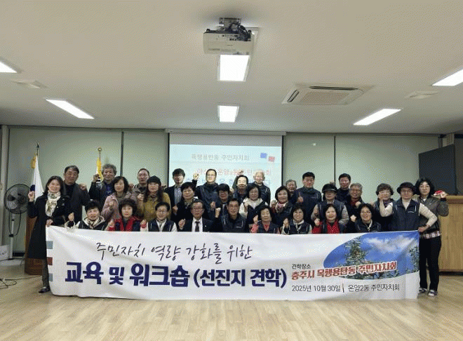 |  [ÃæÃ»±Ç] ¾Æ»ê½Ã ¿Â¾ç2µ¿ ÁÖ¹ÎÀÚġȸ, ÃæÁֽà ¸ñÇà¿ëźµ¿ ¼±ÁøÁö °ßÇÐ ½Ç½Ã  |2025. 10.31 [HKSÇàÁ¤¹æ¼Û]¾Æ»ê½Ã ¿Â¾ç2µ¿ ÁÖ¹ÎÀÚġȸ´Â Áö³ 30ÀÏ ÃæÁֽà ¸ñÇà¿ëźµ¿ ÇàÁ¤º¹Áö¼¾Å͸¦ ¹æ¹®ÇØ ¼±ÁøÁö °ßÇÐÀ» ½Ç½ÃÇß´Ù.