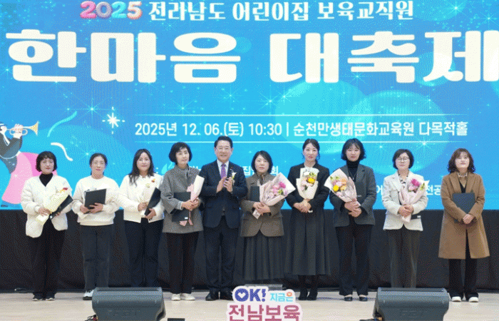 [HKSÇàÁ¤¹æ¼Û]Àü¶ó³²µµ´Â 6ÀÏ ¼øÃµ¸¸»ýŹ®È±³À°¿ø¿¡¼ ¾î¸°ÀÌÁý º¸À°±³Á÷¿ø ÇѸ¶À½ ´ëÃàÁ¦¸¦ °³ÃÖÇϰí, ¾ÆÀÌ Å°¿ì±â ÁÁÀº Àü³² ½ÇÇöÀ» ´ÙÁüÇß´Ù°í ¹àÇû´Ù.