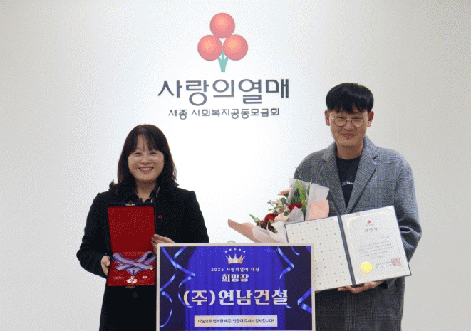 [HKSÇàÁ¤¹æ¼Û]¢ß¿¬³²°Ç¼³(´ëÇ¥ ¹Ú¼ºÀ±)Àº »çȸº¹Áö°øµ¿¸ð±Ýȸ°¡ ÁÖÃÖÇÏ´Â ¡®2025³â Á¦12ȸ »ç¶ûÀÇ¿¸Å ´ë»ó¡¯¿¡¼ ±âºÎºÐ¾ß ¡®Èñ¸ÁÀ塯À» ¼ö¿©ÇØ Àü´Þ½ÄÀ» °¡Á³´Ù°í ¼¼Á¾»çȸº¹Áö°øµ¿¸ð±Ýȸ(ȸÀå ¹Ú»óÇõ)¿¡¼ ÀüÇß´Ù. ¢ß¿¬³²°Ç¼³Àº 2008¡¦