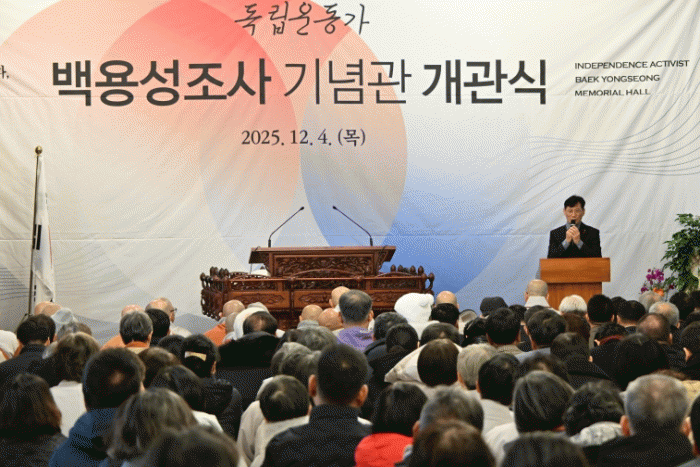 [HKSÇàÁ¤¹æ¼Û]Àå¼ö±ºÀº 4ÀÏ Àå¼ö±ºÀ» ´ëÇ¥ÇÏ´Â µ¶¸³¿îµ¿°¡ÀÌÀÚ ¹ÎÁ·´ëÇ¥ 33ÀÎÀÎ ¹é¿ë¼º Á¶»çÀÇ Á¤½ÅÀ» ±â¸®°í °è½ÂÇϱâ À§ÇÑ ¡®µ¶¸³¿îµ¿°¡ ¹é¿ë¼º Á¶»ç ±â³ä°ü¡¯ °³°ü½ÄÀ» ¼ºÈ²¸®¿¡ ¸¶ÃÆ´Ù°í ¹àÇû´Ù. À̳¯ °³°ü½Ä¿¡´Â ¹é¿ë¼ºÁ¶»ç ±â³ä»ç¡¦