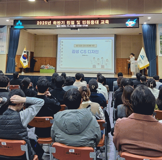 [HKSÇàÁ¤¹æ¼Û]ÀÎõ ¹ÌÃßȦ±¸´Â 3ÀÏ ±¸Ã» ´ëȸÀǽǿ¡¼ Á÷¿ø 150¿© ¸íÀ» ´ë»óÀ¸·Î ¡®ÇϹݱâ Ä£Àý¡¤¹Î¿ø ÀÀ´ë ±³À°¡¯À» ½Ç½ÃÇß´Ù. À̹ø ±³À°Àº °øÁ÷ÀÚÀÇ Ä£Àý »ç°í È®¸³°ú ¹Î¿ø ÀÀ´ë ¿ª·® Çâ»óÀ» À§ÇØ ¸¶·ÃµÆÀ¸¸ç, ¡ãÄ£ÀýÀÇ Á߿伺 ¹× »ç·Ê¡¦