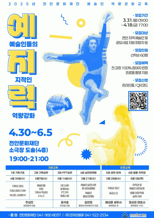 ¿¹.Áö.·ÂÀº ¿¹¼úÀεéÀÇ ÁöÀûÀÎ ¿ª·®°ÈÀÇ ÁÙÀÓ¸»·Î, ¹®È¿¹¼ú °ü·Ã °ø¸ð»ç¾÷ Áö¿ø ½Ã ÇÊ¿äÇÑ ±âº»±³À°°ú Àü¹®±³À°À» Á¦°øÇÑ´Ù.