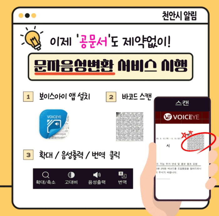 ¡®º¸À̽º¾ÆÀÌ¡¯´Â °ø¹®¼¿¡ »ðÀÔµÈ Àü¿ë ¹ÙÄڵ带 ½º¸¶Æ®ÆùÀ¸·Î ½ºÄµÇϸé, ¹®¼ÀÇ ³»¿ëÀ» À½¼ºÀ¸·Î º¯È¯ÇØ ÀоîÁÖ´Â ±â¼úÀÌ´Ù.