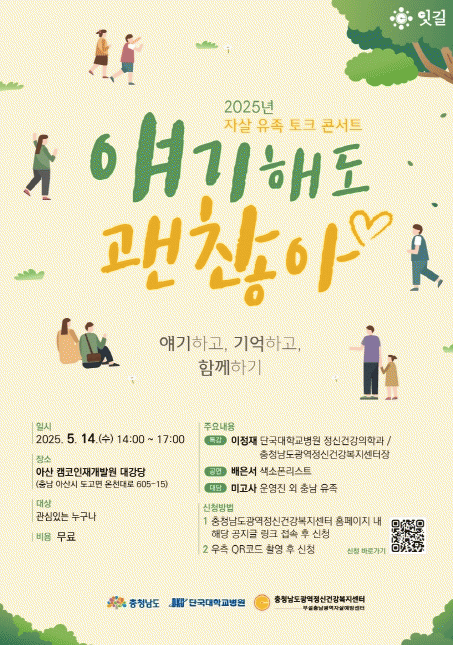 À̾î ÀÚ»ì À¯Á· ´ë´ã¿¡¼´Â ÀÚ»ì»çº°ÀÚ ¿Â¶óÀÎ ÀÚÁ¶¸ðÀÓ ¡®¹Ì°í»ç(¹Ì¾ÈÇØ °í¸¶¿ö »ç¶ûÇØ)¡¯ ¿î¿µÁø°ú Ãæ³² À¯Á· µ¿·áÁö¿ø Ȱµ¿°¡ ¡®´ê±æÀâÀÌ¡¯°¡ Âü¿©ÇØ Áø¼ÖÇÑ À̾߱⸦ ³ª´ ¿¹Á¤ÀÌ´Ù.