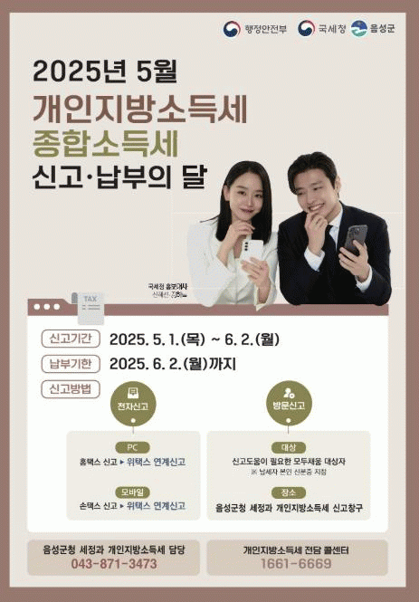 À½¼º±ºÀº ³³¼¼ÀÚ ÆíÀǸ¦ À§ÇØ Á¾Çռҵ漼¿Í °³ÀÎÁö¹æ¼Òµæ¼¼ ½Å°íµµ¿òⱸ(À½¼º±ºÃ» 1Ãþ ¼¼Á¤°ú)¸¦ ÃæÁÖ¼¼¹«¼ ÃæºÏÇõ½ÅÁö¼¿Í ÇÕµ¿À¸·Î ¼³Ä¡¡¤¿î¿µÇÑ´Ù.