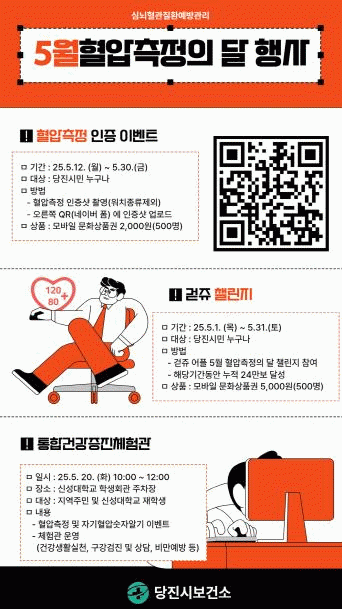 ÀÌ¿Í ÇÔ²², 5¿ù 7ÀϺÎÅÍ °æ·Î´ç°ú ³ëÀδëÇÐ, º¹Áö°ü µî¿¡¼ ½Ã¹ÎÀ» ´ë»óÀ¸·Î Ç÷¾Ð ¼öÄ¡ ÀÎÁö¿Í ½É³úÇ÷°üÁúȯ ¿¹¹æ ±³À°À» ½Ç½ÃÇÏ´Â ¡®ÁýÁߺ¸°Ç±³À°¡¯ÀÌ ÁøÇàµÇ¸ç, ¸¸¼ºÁúȯÀÚ¸¦ À§ÇÑ ¡®°íÇ÷¾Ð °Ç°±³½Ç¡¯µµ ¸ÅÁÖ ¼ö¿äÀÏ º¸°Ç¼Ò¿¡¼ ¿î¿µµÈ´Ù.
