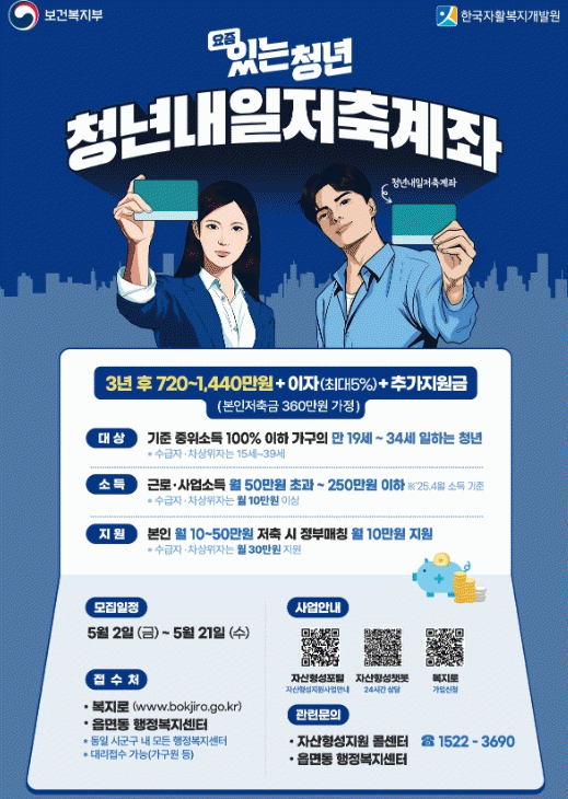 3³â°£ ±Ù·Î Ȱµ¿ À¯Áö, ÀÚ¸³¿ª·®±³À° À̼ö, ÀÚ±Ý »ç¿ë°èȹ¼ Á¦Ãâ µî ¸ðµç ¿ä°ÇÀ» ÃæÁ·Çϸé, º»ÀÎ ÀúÃà±Ý¿¡ Á¤ºÎÁö¿ø±Ý°ú ÀÌÀÚ±îÁö ´õÇØ ¸ñµ· ¸¶·ÃÀÌ °¡´ÉÇÏ´Ù.