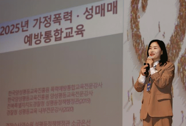 °ÀǸ¦ ¸ÃÀº ¼ÒÀº¼± °æÂû¼ö»ç¿¬¼ö¿ø ¼ºÆòµîÁ¤Ã¥ÇàÁ¤°ü(Çѱ¹¾ç¼ºÆòµî±³À°ÁøÈï¿ø Æø·Â¿¹¹æ ÅëÇÕ±³À° Àü¹®°»ç)Àº °¡Á¤Æø·Â¡¤¼º¸Å¸Å ¹ß»ý ¿øÀΰú »ç·Êº° ´ëÀÀ ¹æ¹ýÀ» ¾Ë¾Æº¸°í, Á¨´õÆø·Â¿¡ ´ëÇÑ ±¹°¡ ¹× ÀÚÄ¡´ÜüÀÇ Ã¥ÀÓ°ú »çȸÀÇ ¿ªÇÒ¿¡ ´ëÇØ ±³À°Çß´Ù.
