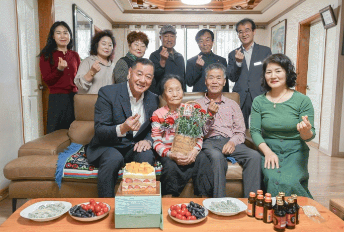 ÃÖ¿øÃ¶ ½ÃÀåµµ °è·æ¸é¿¡ °ÅÁÖÇÏ´Â 103¼¼ ±è±â¼ø ¾î¸£½Å ´ìÀ» Á÷Á¢ ã¾ÆºË°í ¾î¹öÀÌÀÇ ÀºÇý¿¡ °¨»çµå¸®¸ç °Ç°À» ±â¿øÇÏ´Â Àλç¿Í ÇÔ²² Ä«³×À̼ÇÀ» °¡½¿¿¡ ´Þ¾Æµå¸®°í ²É¹Ù±¸´Ï¸¦ Àü´ÞÇß´Ù.