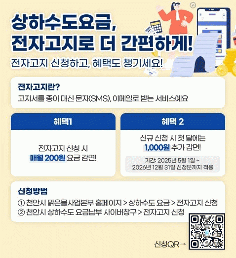 ÀüÀÚ°íÁö ½ÅûÀº õ¾È½Ã ¸¼Àº¹°»ç¾÷º»ºÎ ´©¸®Áý, »óÇϼöµµ ¿ä±Ý³³ºÎ »çÀ̹öⱸ, QRÄÚµå µîÀ» ÅëÇØ °£ÆíÇÏ°Ô ½Åû °¡´ÉÇÏ´Ù.