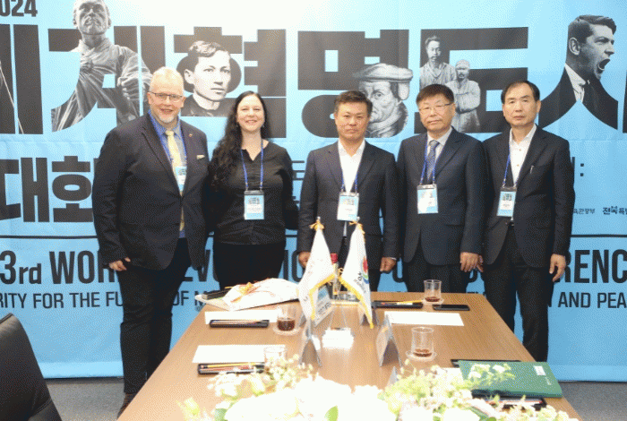 À̹ø Á¦4ȸ ¼¼°èÇõ¸íµµ½Ã ¿¬´ëȸÀÇ´Â µ¶Àϳó¹ÎÀüÀï 500ÁÖ³âÀ» Áß½ÉÀ¸·Î Ç쵂 ¼¼°è °¢±¹ÀÇ ³ó¹ÎºÀ±â¸¦ »õ·Ó°Ô Á¶¸íÇÑ´Ù´Â Àǹ̸¦ °®´Â´Ù.