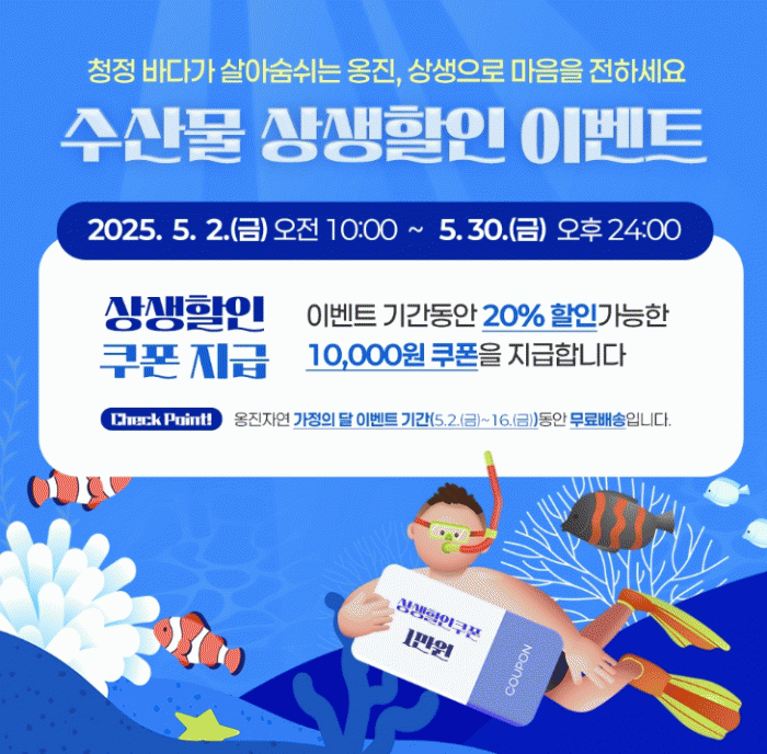 ÀÌ¿Í ÇÔ²² 5¿ù 2ÀϺÎÅÍ 30ÀϱîÁö 4ÁÖ°£ ÁøÇàµÇ´Â ¡®¼ö»ê¹° »ó»ýÇÒÀÎ À̺¥Æ®¡¯¿¡¼´Â ¿ËÁø±ºÀÇ ½Å¼±ÇÑ ¼ö»ê¹°À» 20% ÇÒÀÎµÈ °¡°Ý(ÃÖ´ë 10,000¿ø Çѵµ)À¸·Î ¸¸³ªº¼ ¼ö ÀÖ´Ù.