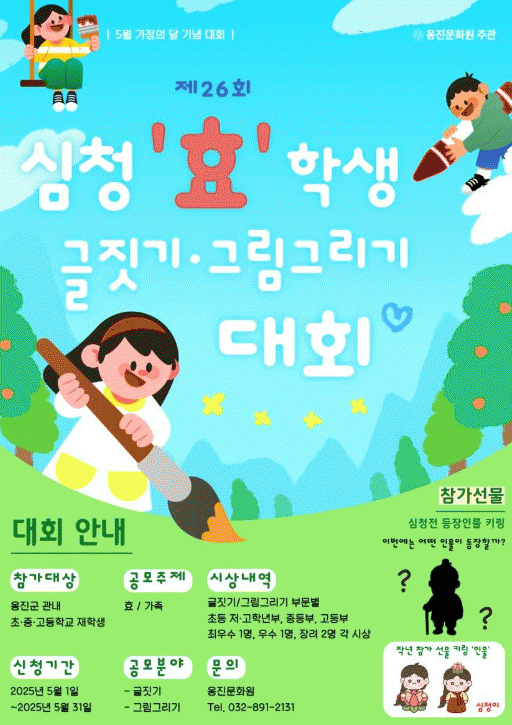'È¿'¿Í '°¡Á·'À» ÁÖÁ¦·Î ±ÛÁþ±â ¹× ±×¸²±×¸®±â ºÎ¹®À¸·Î ³ª´©¾î ÁøÇàµÇ¸ç, û¼Ò³âµéÀÌ °¡Á· »ç¶û°ú È¿½ÉÀ» ÀÚÀ¯·Ó°Ô Ç¥ÇöÇϰí, ¼¼´ë °£ °ø°¨´ë¸¦ È®»êÇÏ´Â ¼ÒÁßÇÑ ±âȸ°¡ µÉ °ÍÀ¸·Î ±â´ëµÈ´Ù.