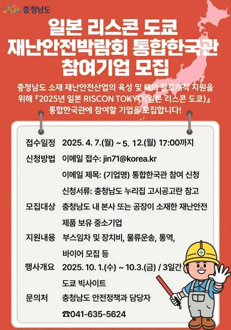 ¸ðÁý ´ë»óÀº µµ³» º»»ç ¶Ç´Â °øÀåÀÌ ¼ÒÀçÇÑ Àç³¾ÈÀü Á¦Ç°º¸À¯ Áß¼Ò±â¾÷À̸ç, µµ ´©¸®Áý °í½Ã/°ø°í¶õ¿¡ °ÔÀçµÈ °ø°í¹®À» È®ÀÎ ÈÄ 12ÀÏ ¿ÀÈÄ 5½Ã±îÁö ÀüÀÚ¿ìÆíÀ¸·Î ½ÅûÇÏ¸é µÈ´Ù.