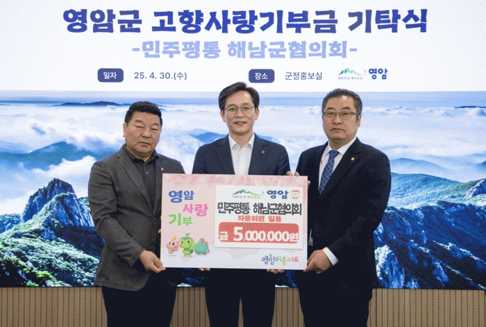 ÇÏ·ç ÀüÀÎ 4¿ù30ÀÏ ¹ÎÁÖÆòÈÅëÀÏÀÚ¹®È¸ÀÇ ÇØ³²±ºÇùÀÇȸ°¡ ¿µ¾Ï±º¿¡ °íÇâ»ç¶û±âºÎ±Ý 500¸¸¿øÀ» º¸³»¿Ô´Ù.