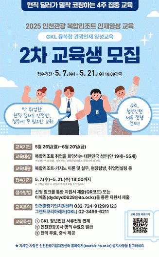 ÇØ´ç ±³À°Àº ´Ù¼öÀÇ º¹ÇÕ¸®Á¶Æ®¸¦ °¡Áø ÀÎõÁö¿ªÀÇ Æ¯¼ºÀ» °í·ÁÇÏ¿©, ÇöÀå °æÇèÀÌ Ç³ºÎÇÑ GKL°ú Áö¿ª°ü±¤»ê¾÷¿¡ ´ëÇÏ¿© ³ôÀº ÀÌÇØµµ¸¦ °¡Áø ÀÎõ°ü±¤°ø»ç°¡ ÇÔ²² Çù·ÂÇÏ¿© ÁøÇàÇÏ´Â ½Ç¹« Á᫐ ±³À° ÇÁ·Î±×·¥ÀÌ´Ù.
