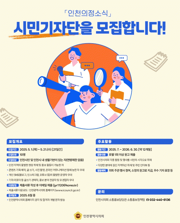 À̹ø¿¡ ¼±Á¤µÈ ½Ã¹Î±âÀÚ´Â ¿À´Â 7¿ùºÎÅÍ ³»³â 6¿ù±îÁö 1³â°£ ÀÎõ½ÃÀÇȸÀÇ ÀÇÁ¤È°µ¿°ú ´Ù¾çÇÑ Áö¿ªÀÇ ¼Ò½ÄÀ» ÀüÇÏ°Ô µÈ´Ù.