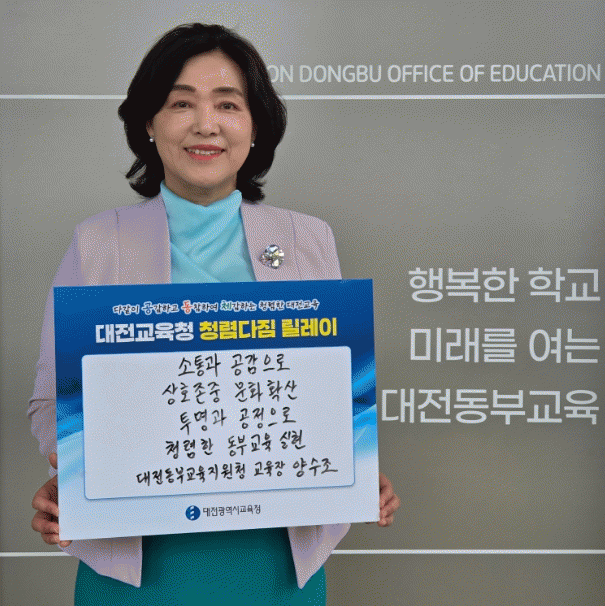 ´ëÀüµ¿ºÎ±³À°Áö¿øÃ» ¾ç¼öÁ¶ ±³À°ÀåÀº ¸±·¹ÀÌ µÎ ¹øÂ° ÁÖÀÚ·Î Âü¿©ÇØ ¡°¼ÒÅë°ú °ø°¨À¸·Î »óÈ£Á¸Áß¹®È¸¦ È®»êÇϰí, Åõ¸í°ú °øÁ¤À¸·Î û·ÅÇÑ µ¿ºÎ±³À°À» ½ÇÇöÇϰڴÙ.¡±¸ç, ¡°ÀÛÀº ½ÇõÀÌ Å« º¯È¸¦ ¸¸µç´Ù´Â ½Å³äÀ¸·Î, ¸ðµÎ°¡ ü°¨ÇÒ ¼ö Àִ û·ÅÇÑ Á¶Á÷¹®È¸¦ ¸¸µé¾î°¡°Ú´Ù.¡±´Â û·Å ¸Þ½ÃÁö¸¦ ÀüÇß´Ù.