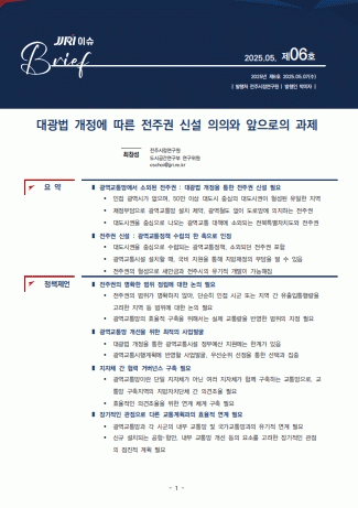 ¿¬±¸¿øÀº ÀÌ·¯ÇÑ ´ë±¤¹ý °³Á¤¿¡ ´ëÇØ ÀüÁÖ±ÇÀÇ ±¤¿ª±³Åë¸Á °³¼±À» À§ÇÑ Áß¿äÇÑ ÁøÀüÀ¸·Î Æò°¡ÇÑ µÚ, Áö¿ª¹ÎÀÌ ½ÇÁ¦ ü°¨ÇÒ ¼ö ÀÖ´Â »ç¾÷ ¼öÇàÀ» À§ÇÑ °úÁ¦¸¦ Á¦½ÃÇß´Ù.