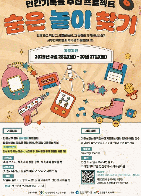 ¡®¼ûÀº ³îÀÌ Ã£±â¡¯´Â ÀÎõ ¼±¸ Áö¿ª¿¡¼ Áñ°å´ø ´Ù¾çÇÑ ³îÀ̹®È¿Í °ü·ÃµÈ ±â·Ï¹°À» ½Ã¹Îµé·ÎºÎÅÍ ±âÁõ¹Þ¾Æ º¸Á¸Çϰí, ÀÌÈÄ »ýȰ»ç Àü½Ã ¹× ¿¬±¸ÀÚ·á·Î Ȱ¿ëÇϰíÀÚ ¸¶·ÃµÆ´Ù.