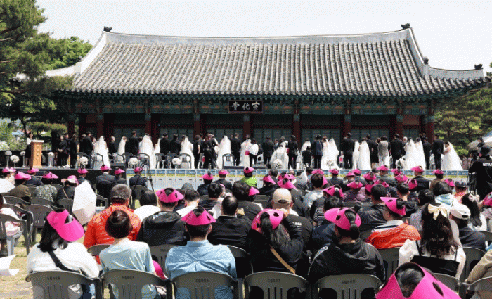 ÇÕµ¿°áÈ¥½ÄÀº ¾î·Á¿î ȯ°æÀ¸·Î °áÈ¥½ÄÀ» ¹Ì·ï ¿Â Àå¾ÖÀÎ ºÎºÎ¸¦ Áö¿øÇÏ´Â Çà»ç·Î, 2000³âºÎÅÍ ¿ÃÇØ±îÁö ÃÑ 588½ÖÀÇ ºÎºÎ°¡ ÈÃËÀ» ¹àÇû´Ù.