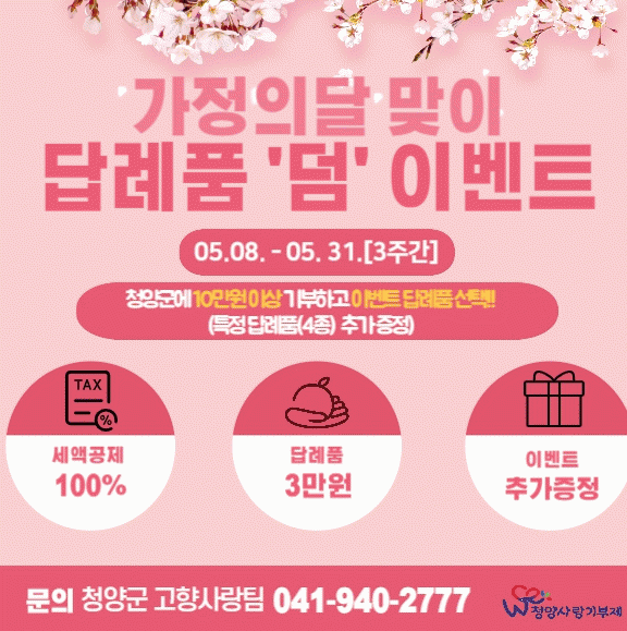 °íÇâ»ç¶ûeÀ½ ´©¸®ÁýÀ» ÅëÇØ û¾ç±º¿¡ 10¸¸ ¿ø ÀÌ»ó ±âºÎÇϰí À̺¥Æ® Âü¿© ¾÷üÀÇ ´ä·ÊǰÀ» ¼±ÅÃÇϸé Ãß°¡ ǰ¸ñÀ» ¹ÞÀ» ¼ö ÀÖ´Ù.