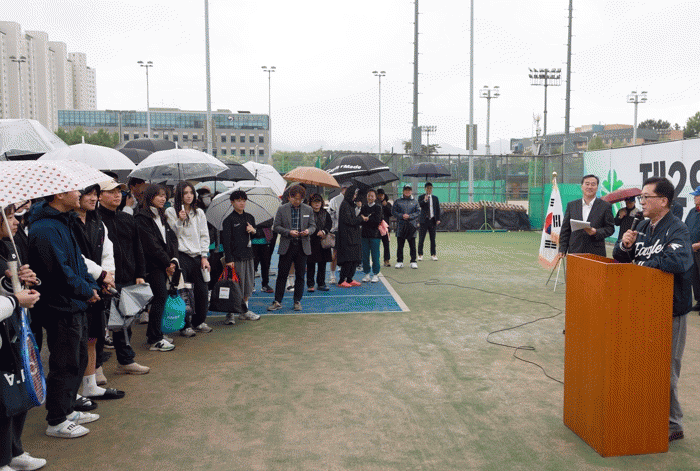 À̳¯ °³È¸½Ä¿¡´Â Áö¿ªÀ» ´ëÇ¥ÇÏ´Â ´Üü¡¤±â°üÀå, ¼±¼ö ¹× ´ëȸ °ü°èÀÚ µî 350¿© ¸íÀÌ Âü¼®ÇÑ °¡¿îµ¥ ´ëÀü½ÃÅ״ϽºÇùȸÀåÀÇ ´ëȸ»ç¸¦ ½ÃÀÛÀ¸·Î ÁÖ¿ä³»ºó Ãà»ç, ±â³äÃÔ¿µ ÈÄ º»°ÝÀûÀÎ ´ëȸ°¡ ÁøÇàµÆ´Ù.